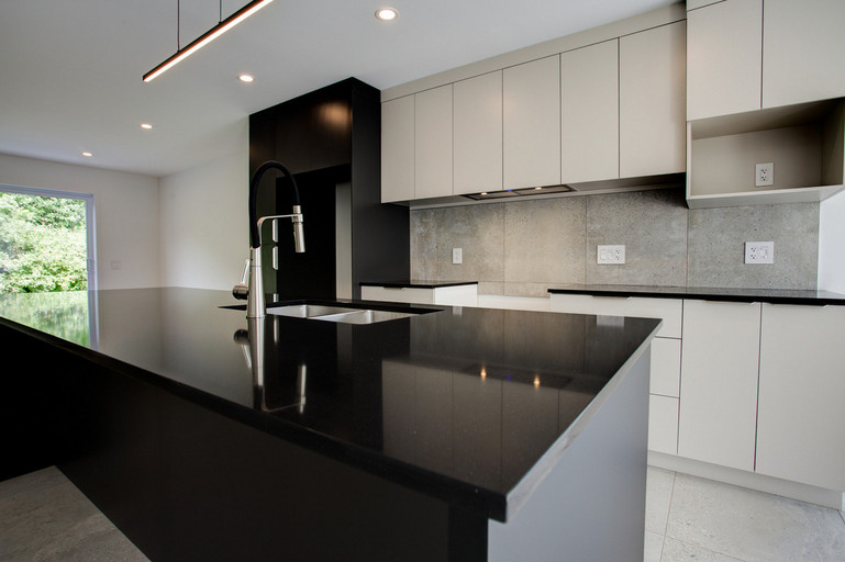 • Cuisine moderne avec grand îlot central de 10 pieds et espace repas