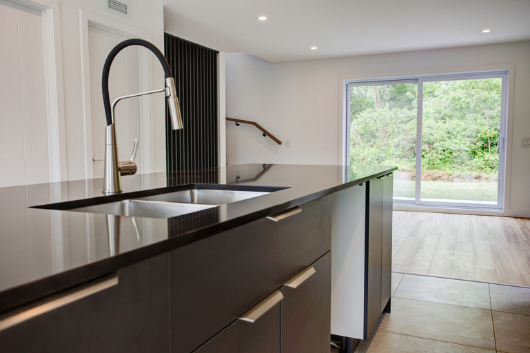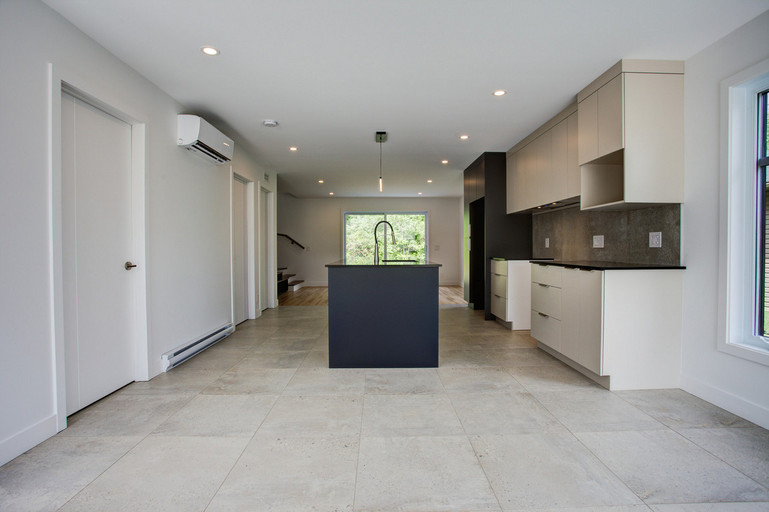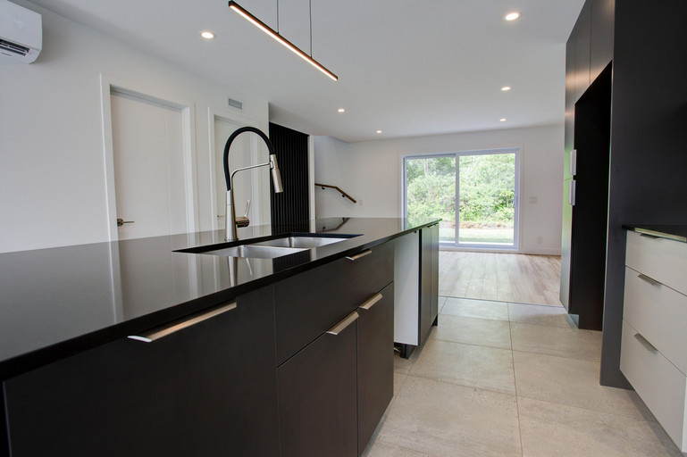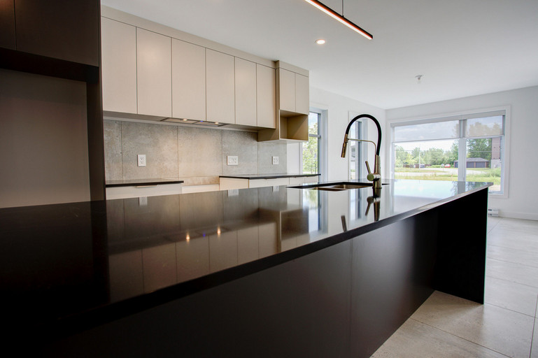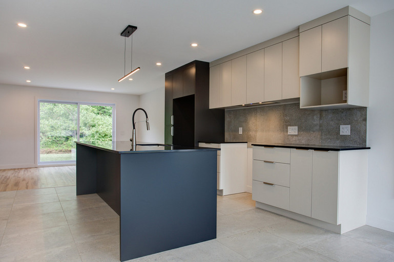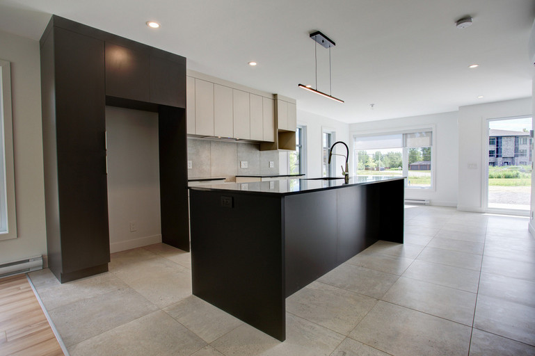 • Cuisine moderne avec grand îlot central de 10 pieds et espace repas