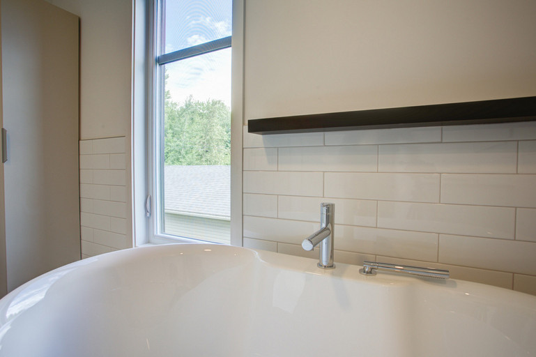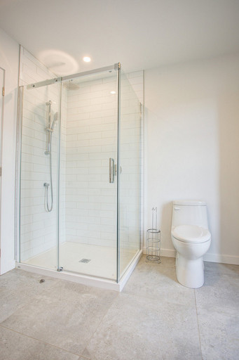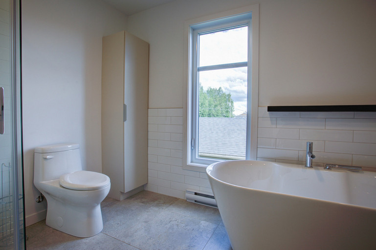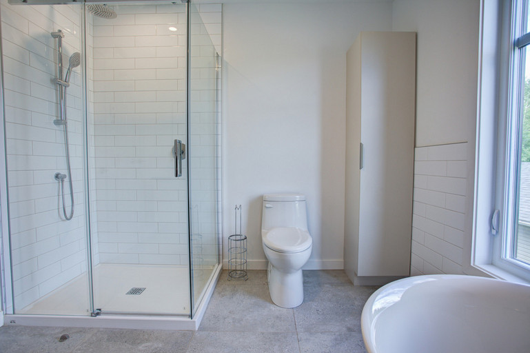 • Salle de bain principale à l’étage avec douche en verre et bain séparé